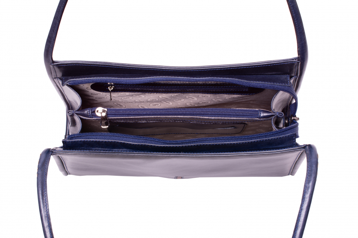 Dámská kabela: ELEGANT - (tříslo - tm. modrá), uzavíratelná zipem.
