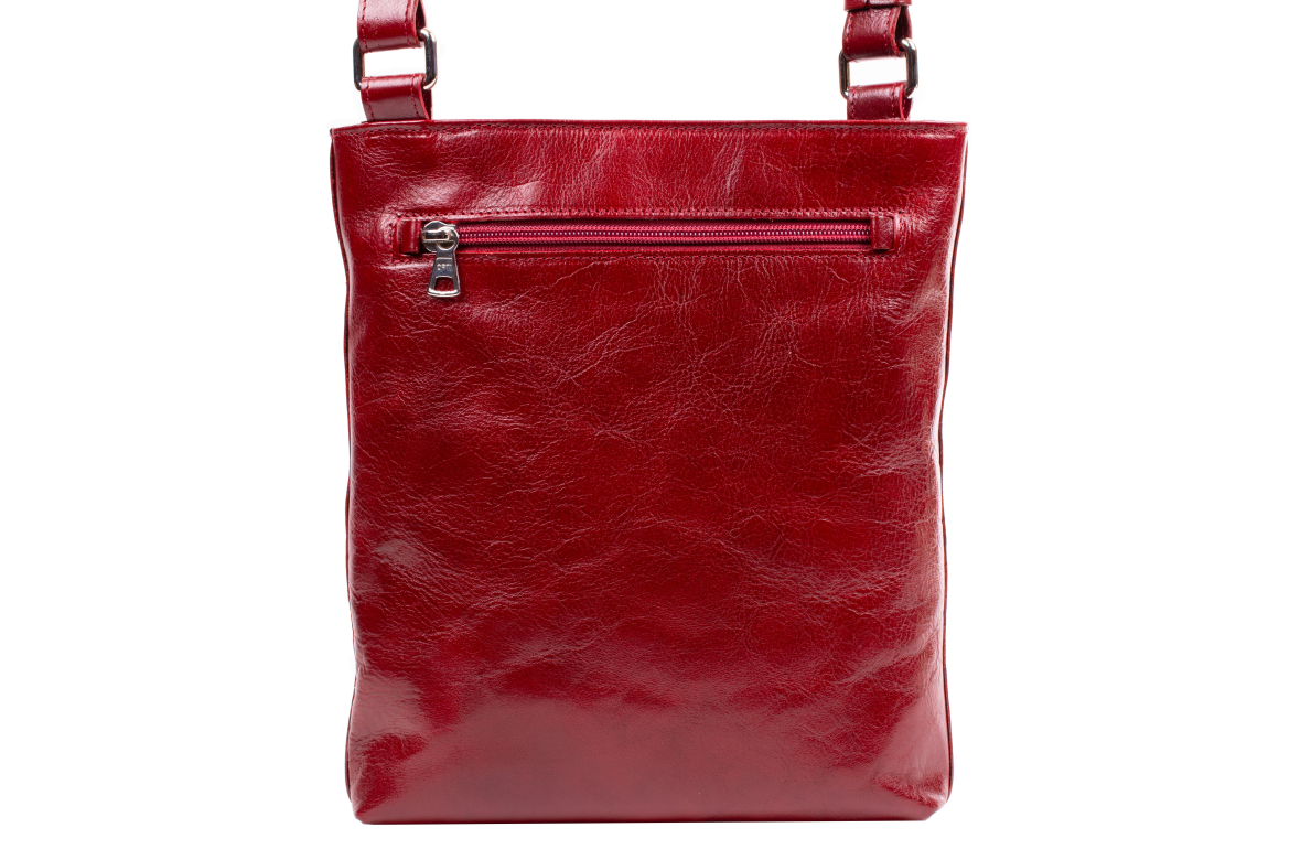 Dámská malá kabela: CLASSIC - Fuego (tříslo - tmavě červená), zhotovená z hovězí usně (pravá kůže), uzavíratelná zipem. Kabelka je opatřena jedním plochým nastavitelným řemenem na rameno, který lze nosit i crossbody.