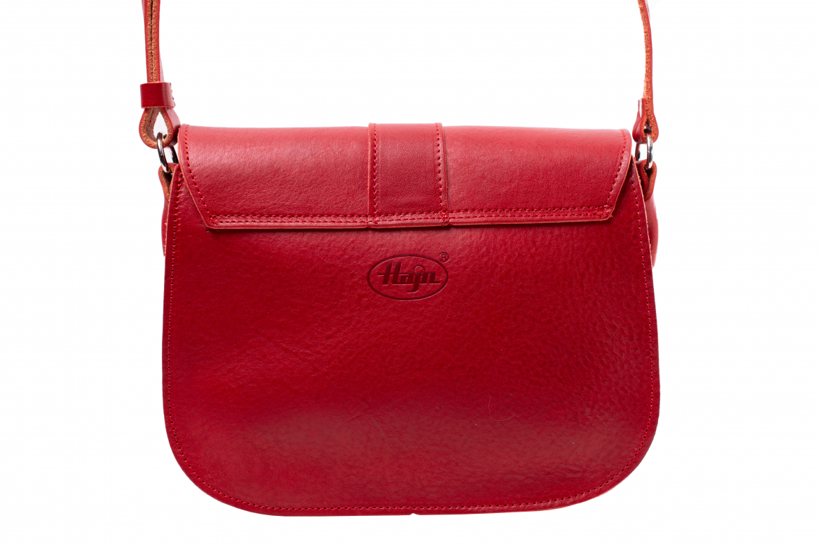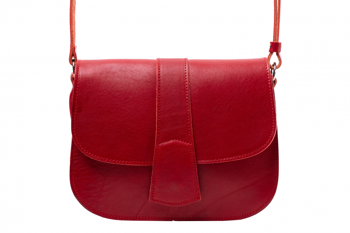 Dámská malá kabelka: NATURE (masivní - červená), zhotovena z hovězí usně (pravá kůže), uzavíratelná klopnou na magnetický buldok. Kabelka je opatřena jedním plochým nastavitelným řemenem na rameno, který lze nosit i crossbody.