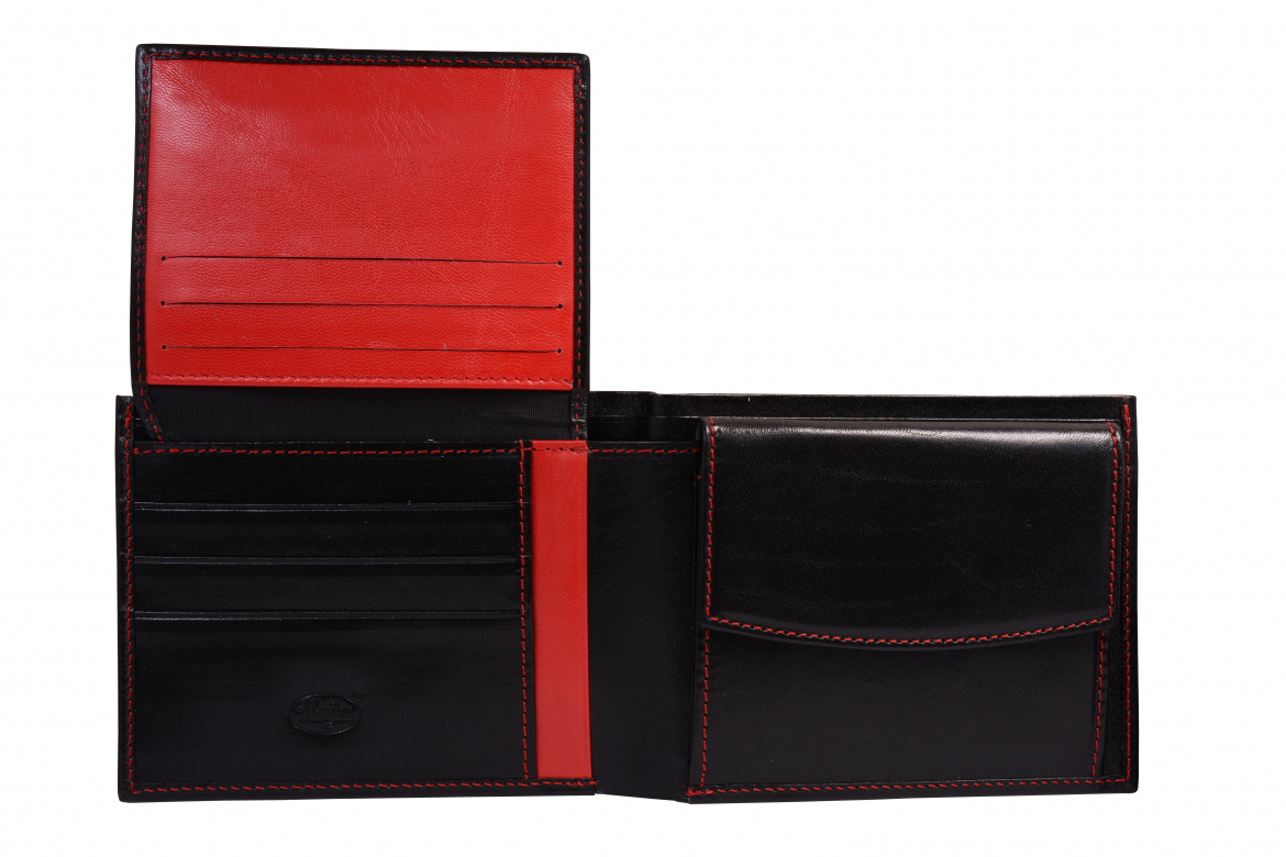 Pánská peněženka: CLASSIC (tříslo - černá/tříslo - flamengo), ušitá z hovězí usně (pravá kůže).
